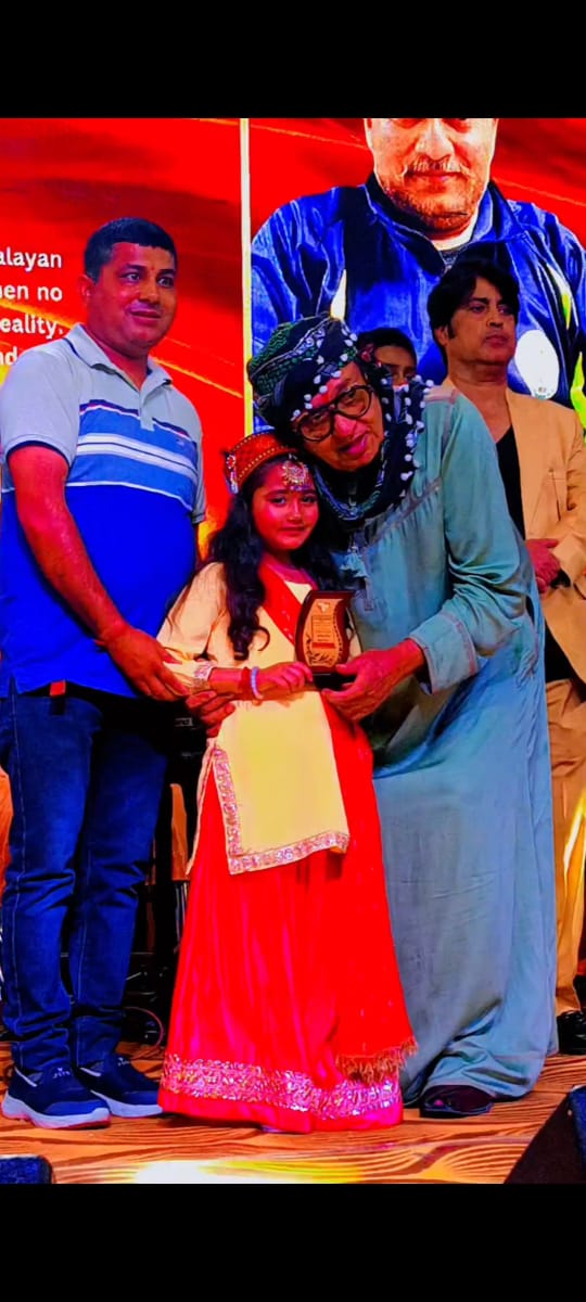 पालमपुर पंचरुखी की आशवी धीमान को बॉलीवुड एक्टर रंजीत सिंह बेदी और राहुल रॉय ने हिमालय श्री अवार्ड 2025 से किया सम्मानित।