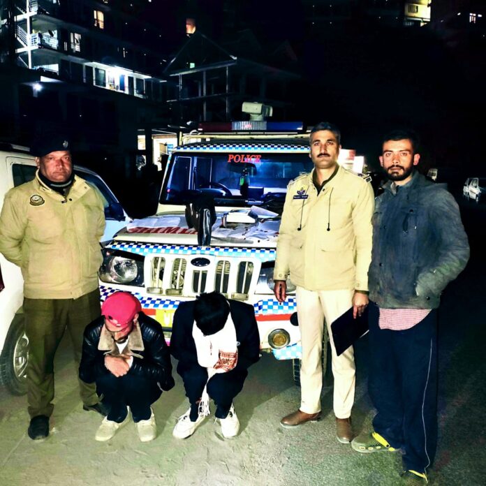 पुलिस थाना ठियोग में दिनांक 01/12/2025 को एनडी एंड पीएस अधिनियम की धारा 21, 29 के तहत एक मामला दर्ज किया गया है। इसके अनुसार, दिनांक 01.12.25 को रात लगभग 9 बजे, जब थाना ठियोग की पुलिस टीम गश्त पर थी, तो उन्हें एक विश्वसनीय सूचना मिली कि कोटखाई निवासी राजन डोगरा और आयुष नामक दो व्यक्ति ठियोग बाईपास स्थित शराब ठेके के पास कार संख्या HP09C-6562 (ऑल्टो) में बैठे हैं और चिट्टे की खरीद-फरोख्त में लिप्त हैं। इसके बाद, एएसआई रंजय और उनकी टीम ठियोग बाईपास की ओर बढ़ी। शराब ठेके के पास पहुँचने पर, एक ऑल्टो कार संख्या HP09C-6562 सड़क के ऊपरी किनारे पर खड़ी मिली। पूछताछ करने पर, चालक की ओर बैठे व्यक्ति ने अपना नाम इस प्रकार बताया: